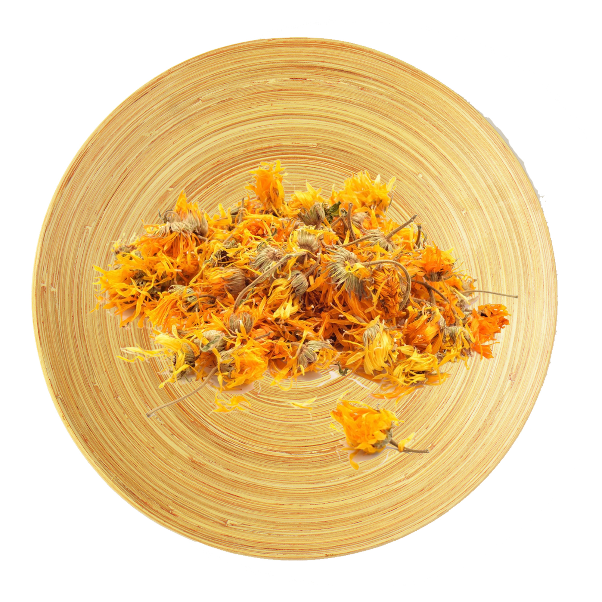 Calendula, also known as marigold, is an annual member of the daisy family that is native to western Asia, Europe and the Mediterranean region. The whole flower heads are added to soups and broths. Marigold flowers are also used to produce a light, yellow dye and natural food coloring. The flowers also add a mild, pleasant flavor to herbal tea blends. The herb’s antifungal and antimicrobial properties help prevent infection and heal injuries to body tissues. Calendula is also known to have anti-inflammatory and antioxidant components, which might help to fight cancer, protect against heart disease, and ease muscle fatigue.